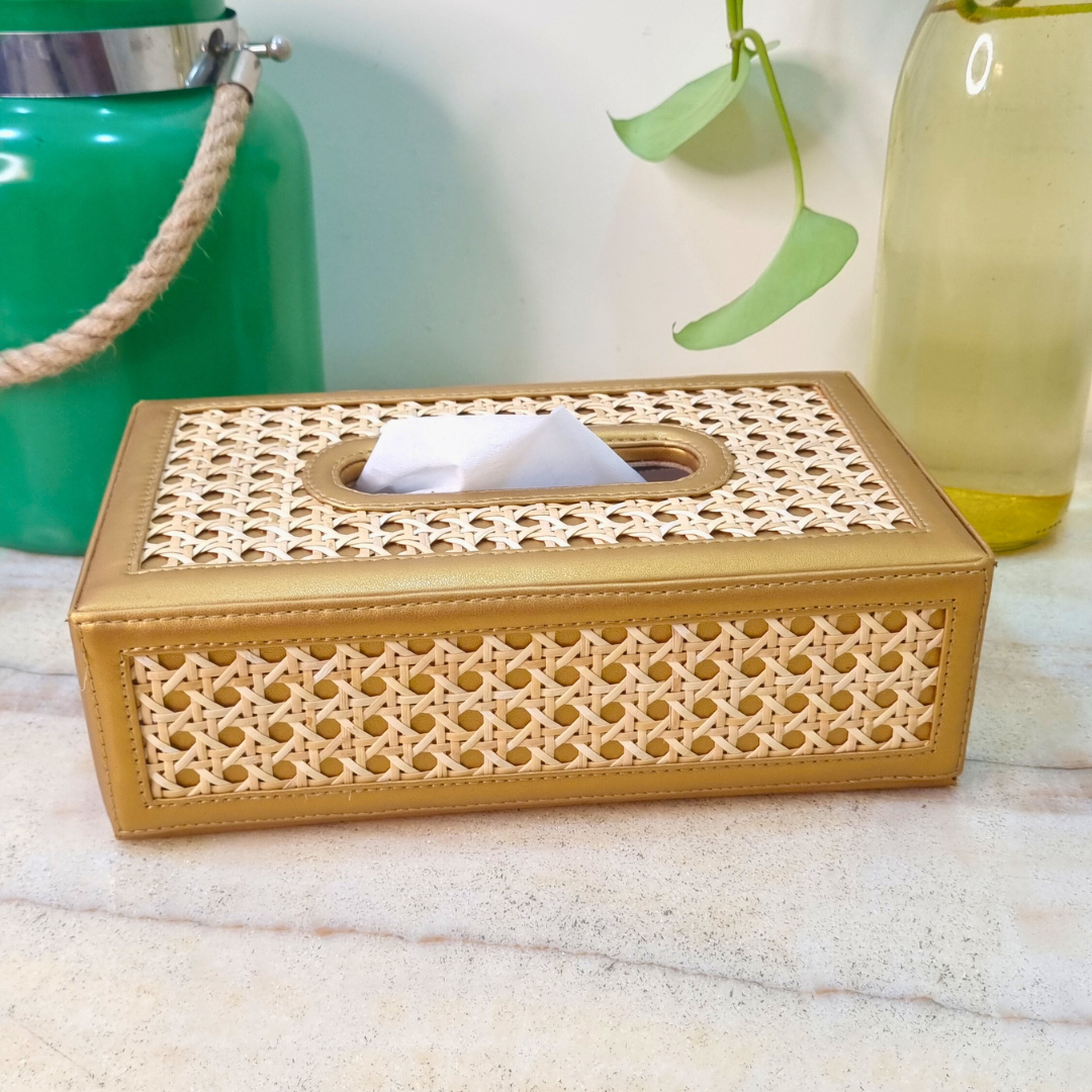 Smitam Lifestyle Rattan Cane Tissue Box Holder Cover is made from sustainable rattan cane and features a unique open weave design. It's perfect for storing standard-size tissue boxes and can be used in any room of the house.