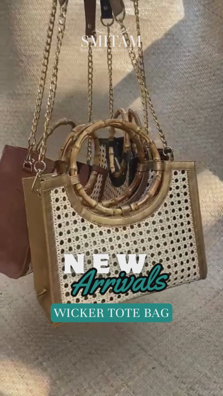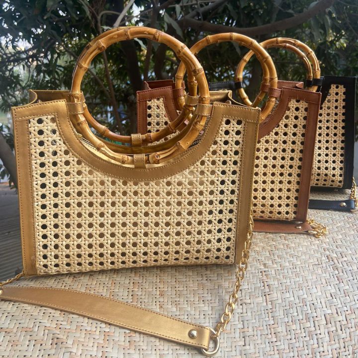 Versatile Cane Elegance: Elevate your look with a wicker tote bag that seamlessly blends cane and vegan leather.